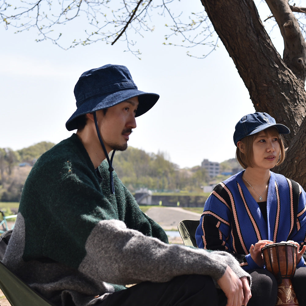 10oz インディゴデニムのオールシーズン使えるアゴ紐付きハット
