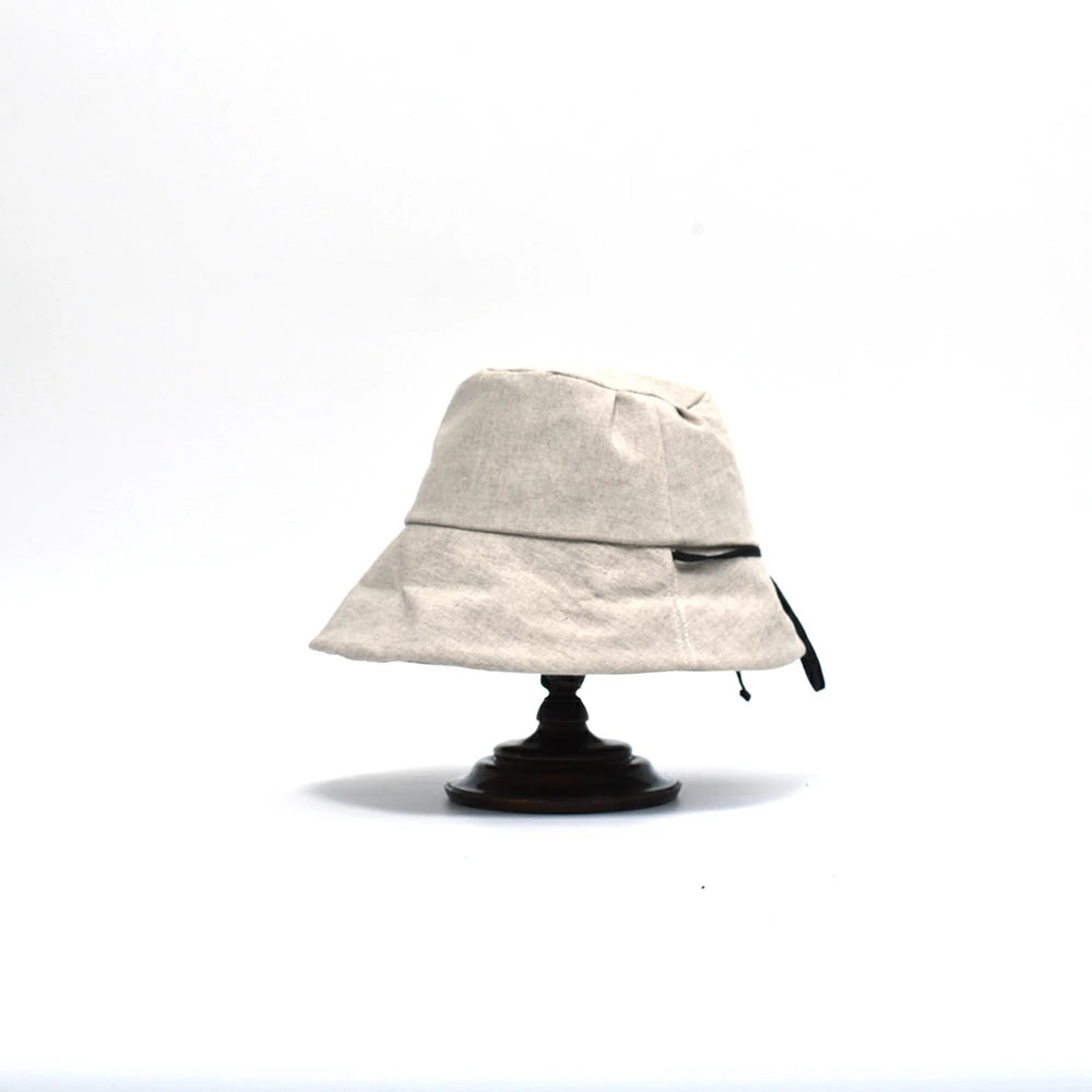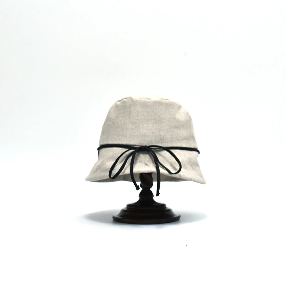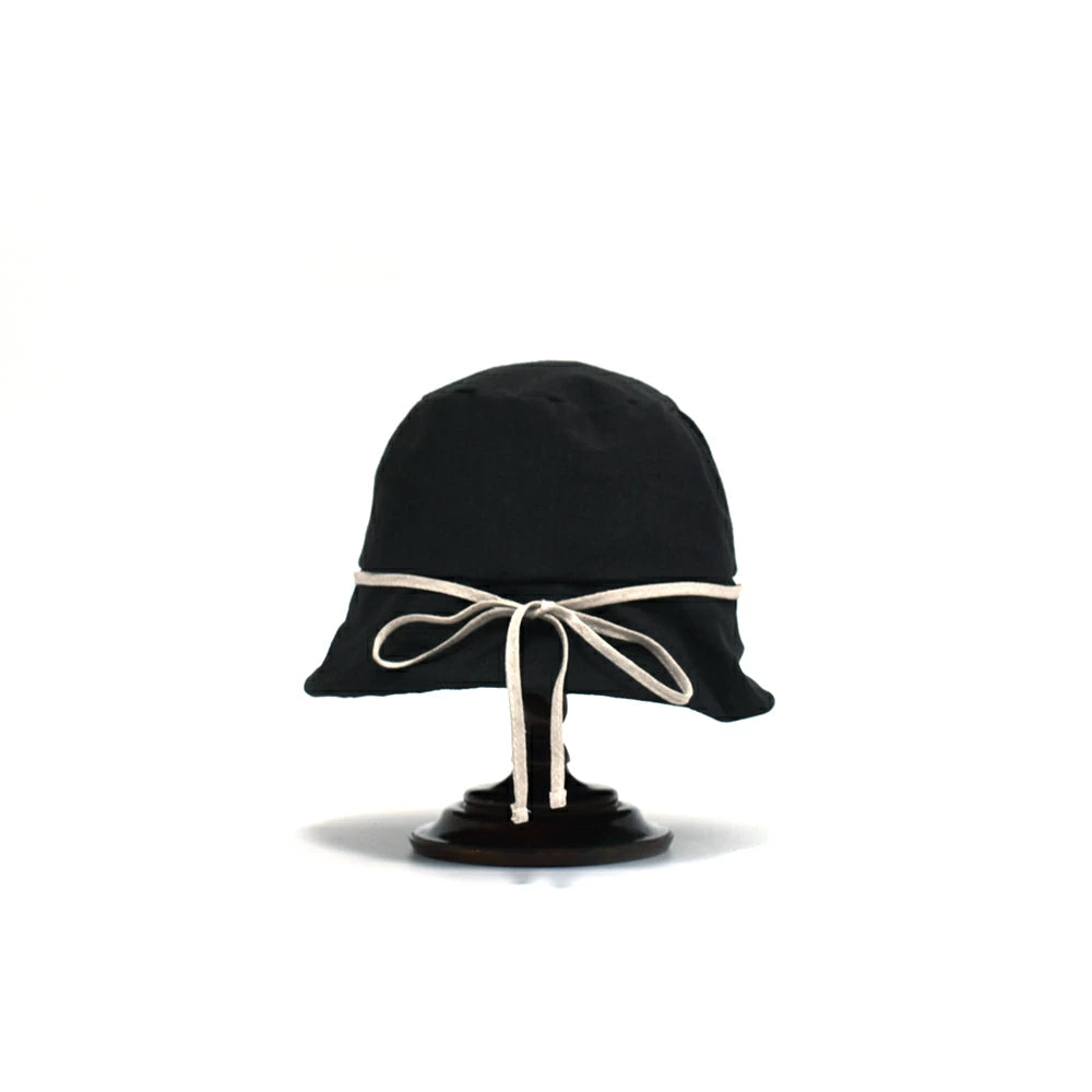 配色のリボンがポイントのハット。リボンは、ブリムの穴に通せばあごひもになる2way仕様