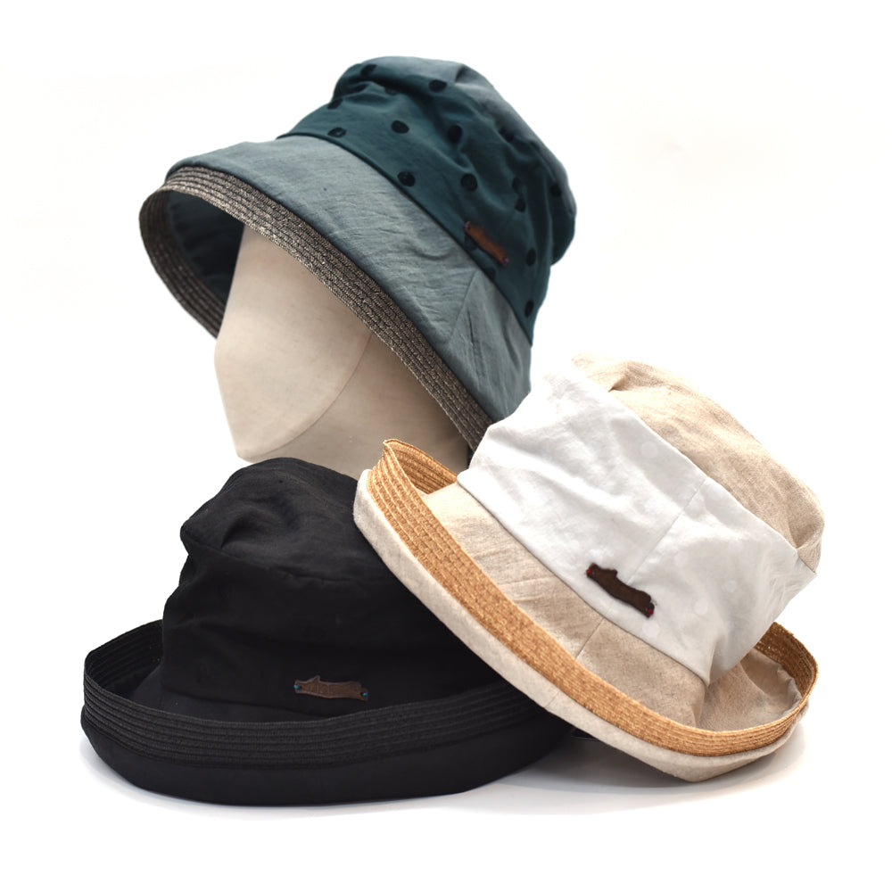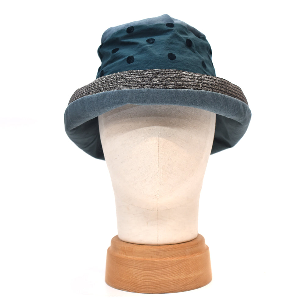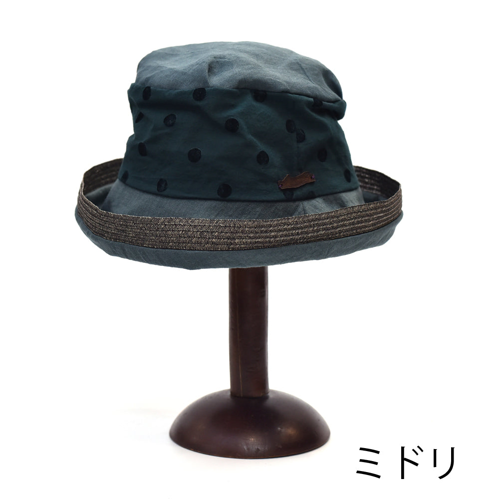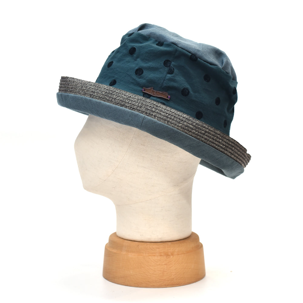 フロッキーのドットとつば先のブレードがポイントのハットです。