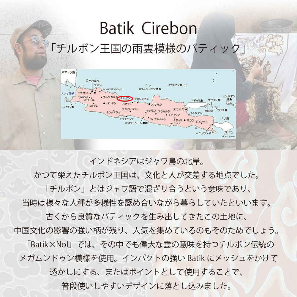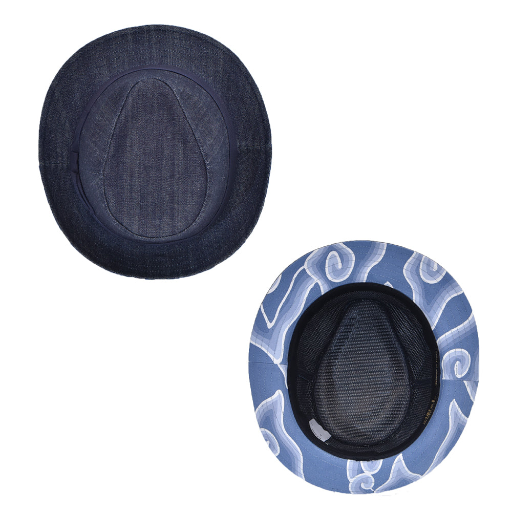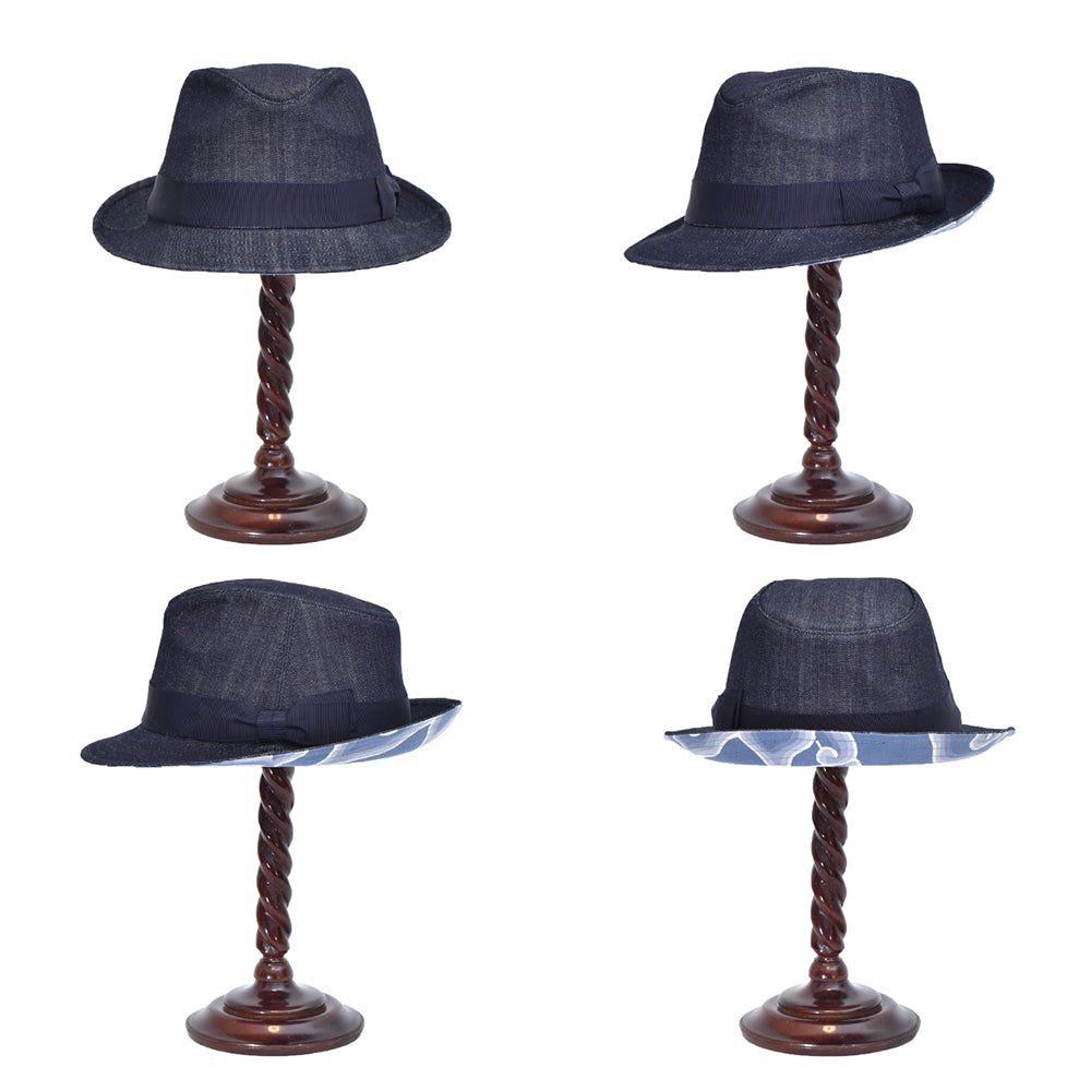 チルボンのトゥリス(手描き)バティック生地と日本製10oz デニム生地使用した高級感のある中折れハット。