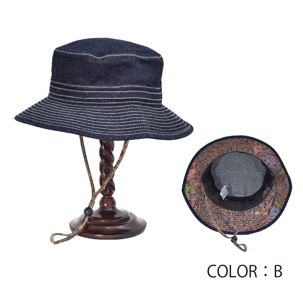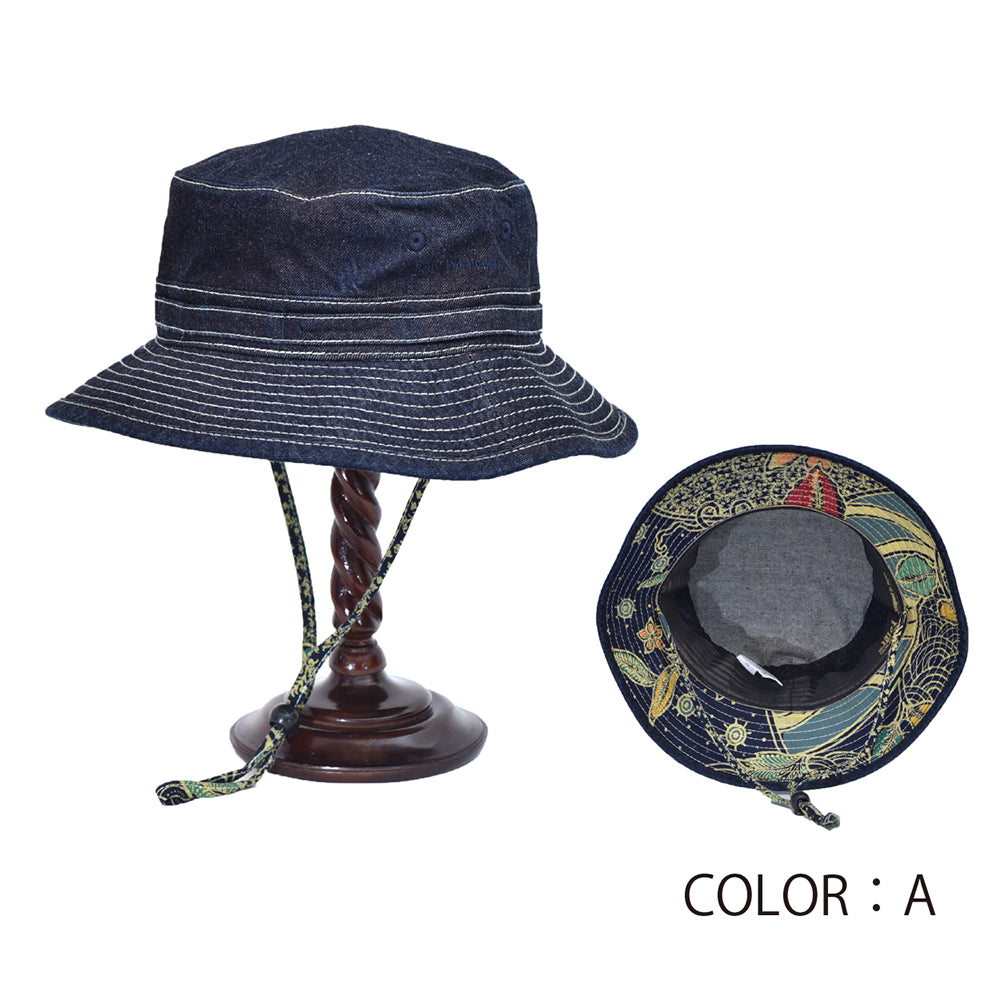 日本製10oz デニムベースにバイザー裏、ベルトペカロンガン産バティックと組み合わせたジャングルハット。