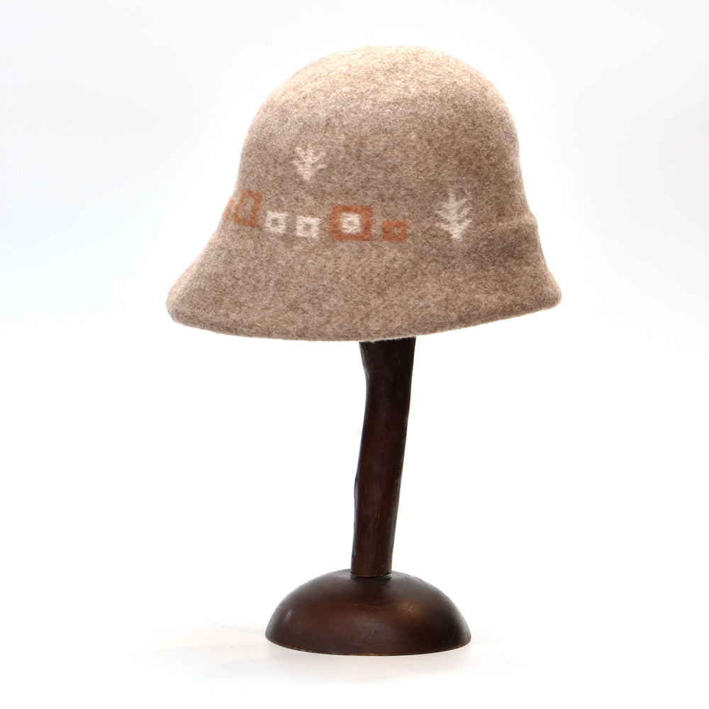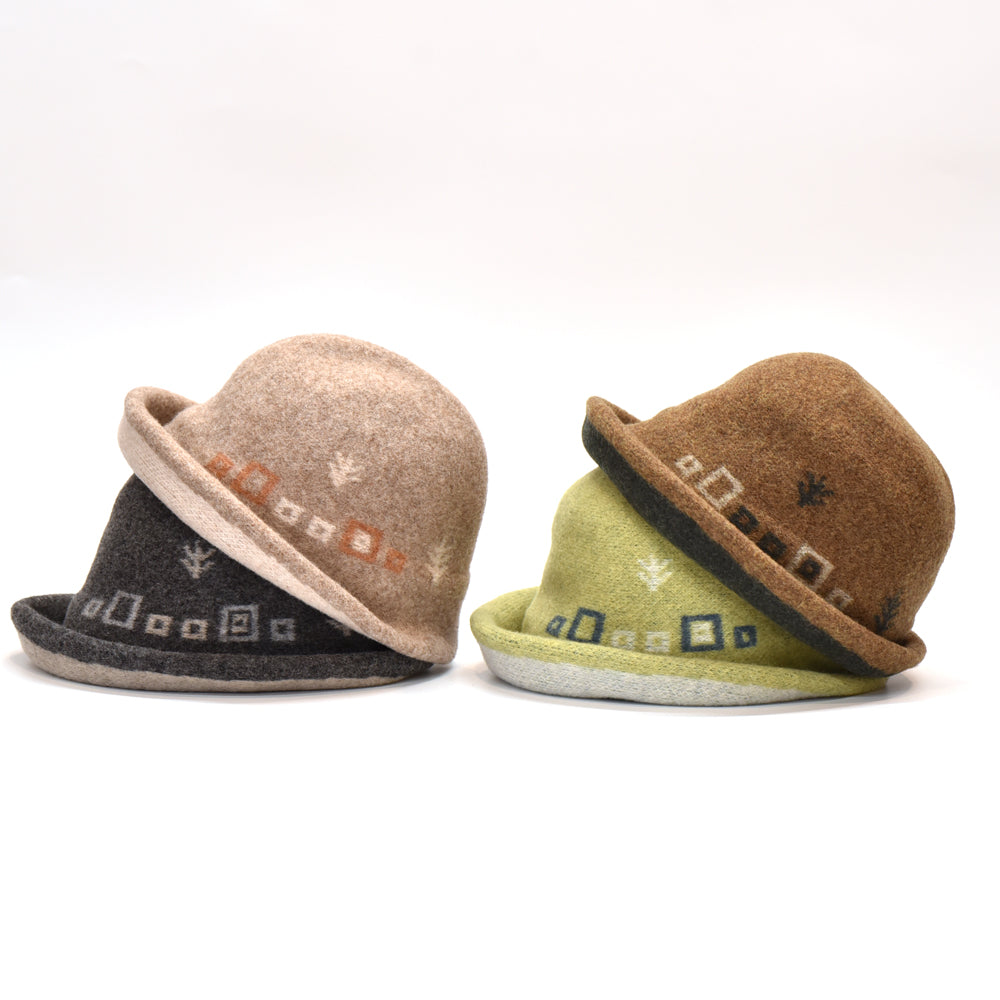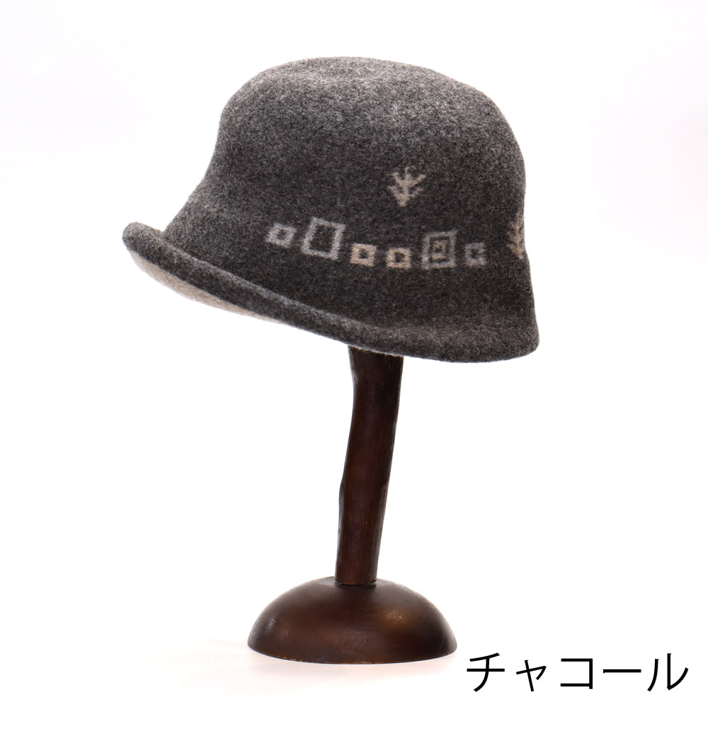 ギャッベ柄のブルトン型のハット。生命の木は家族の健康と長寿、 窓は窓から沢山の幸せが入りますようにという願いがこめられています。