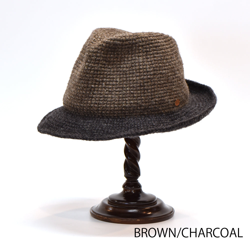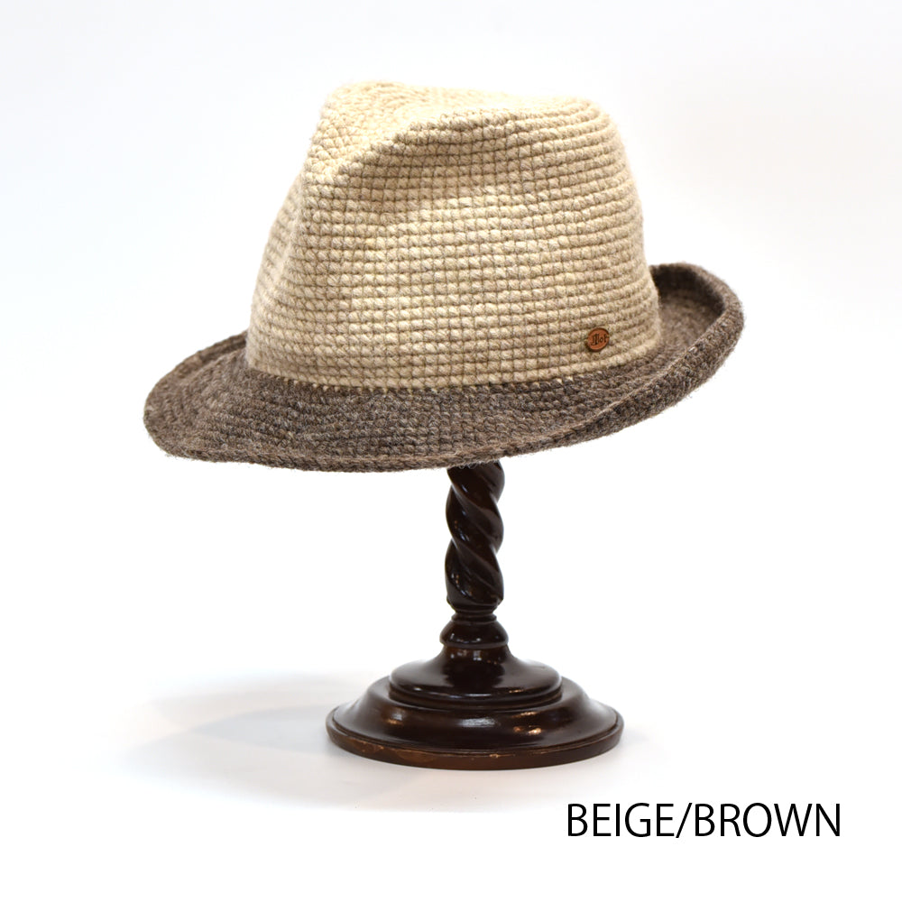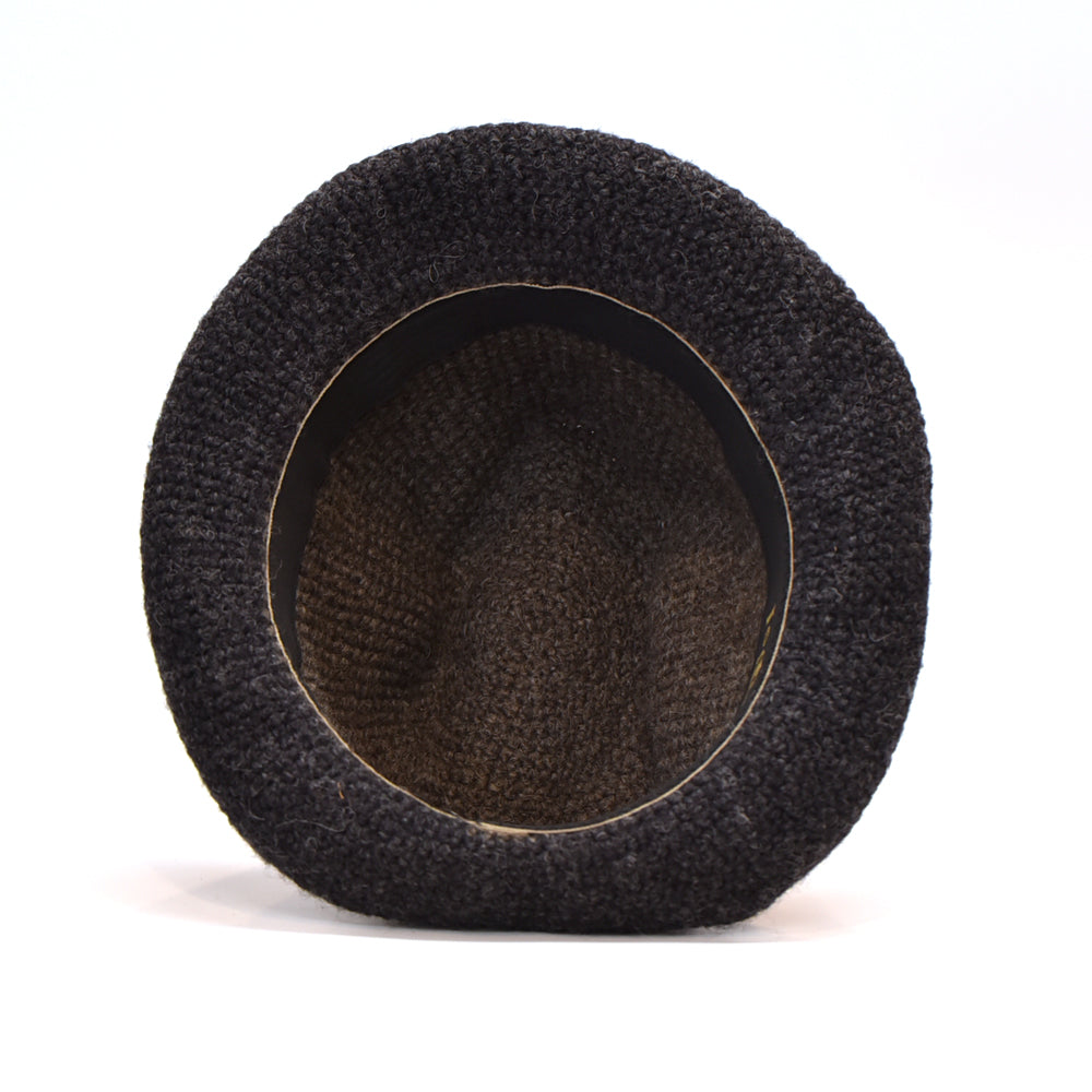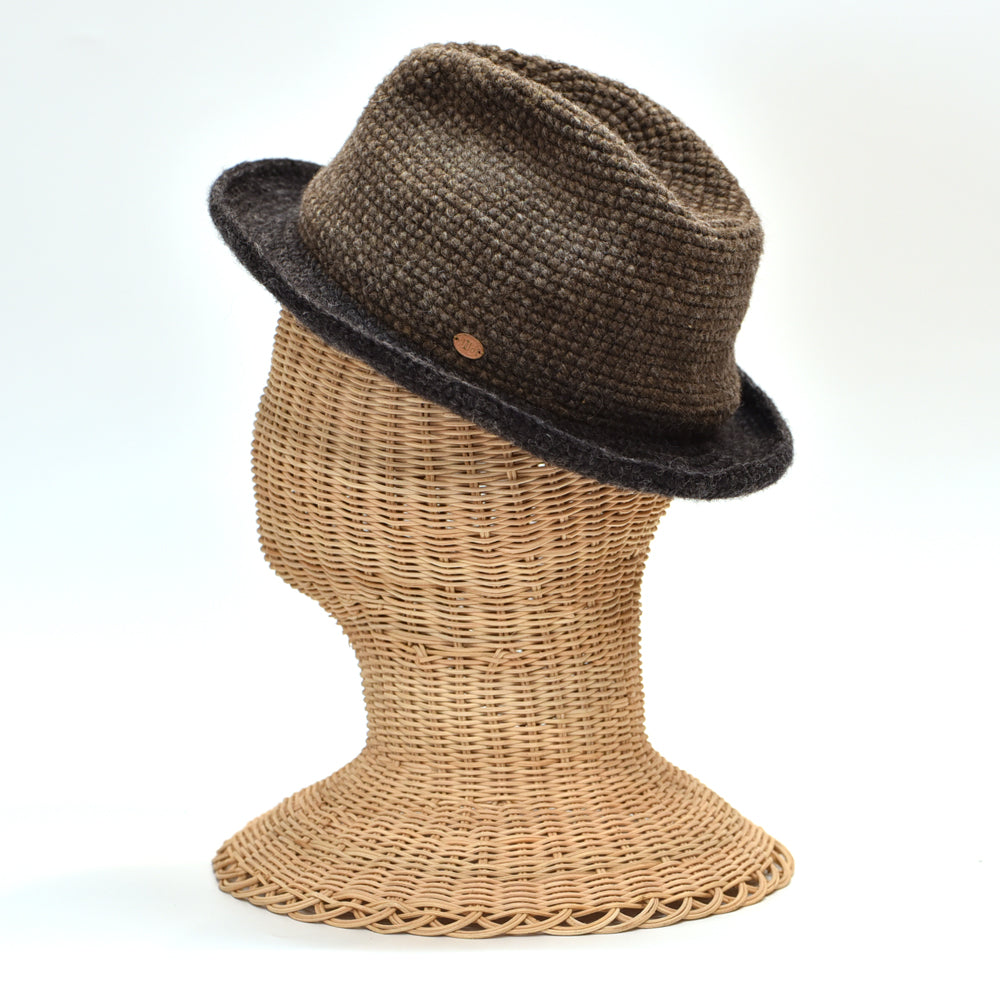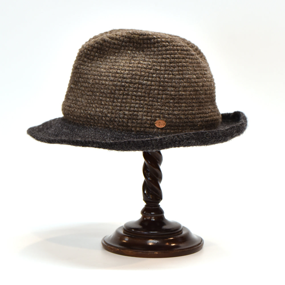 紡毛ウール糸の細編みハット。HAT に適した硬さをもつ手編みならではの表情があります。