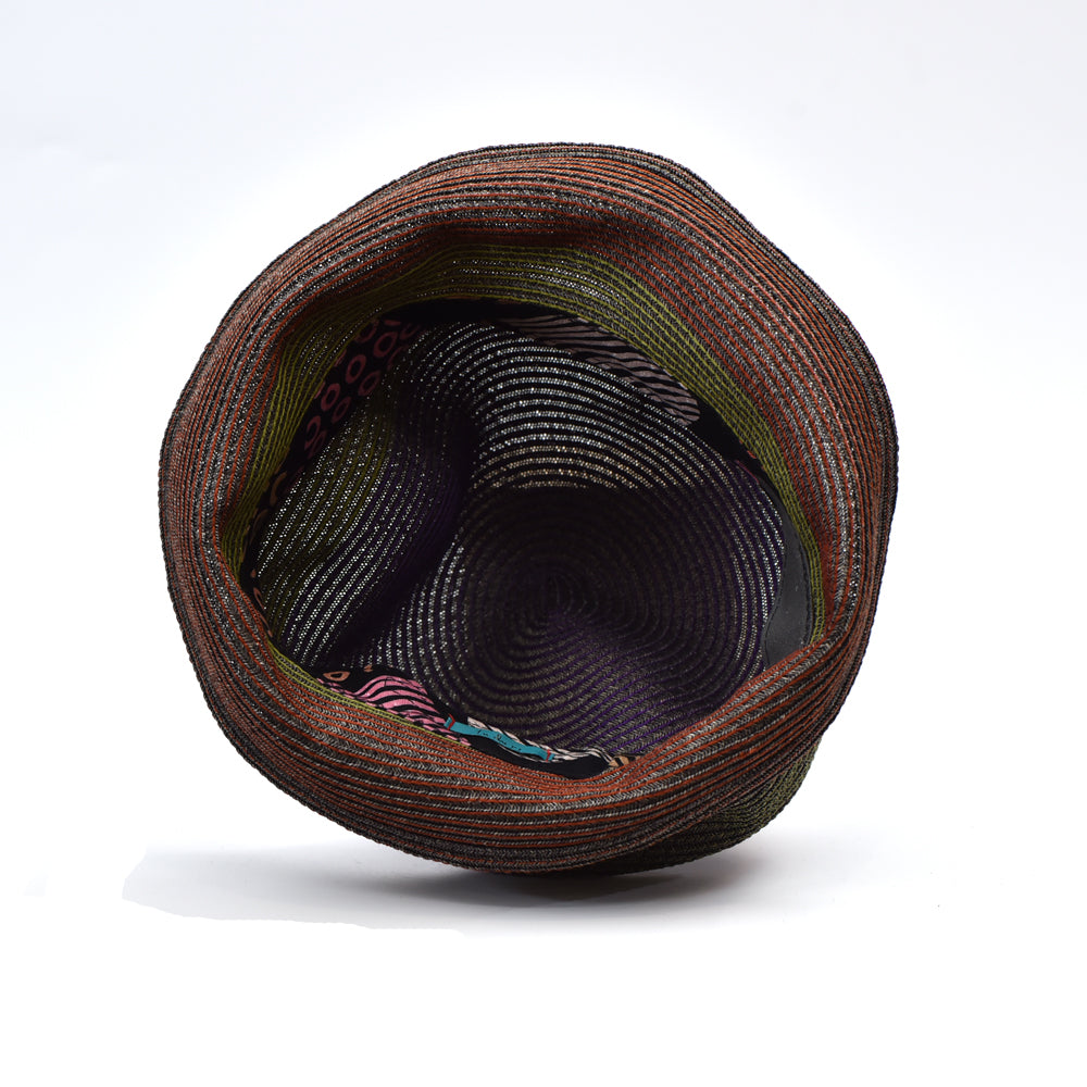 カラフルなステッチのブレードハット。色々な形に遊べるハットです。ユニセックスでお使いいただけます。