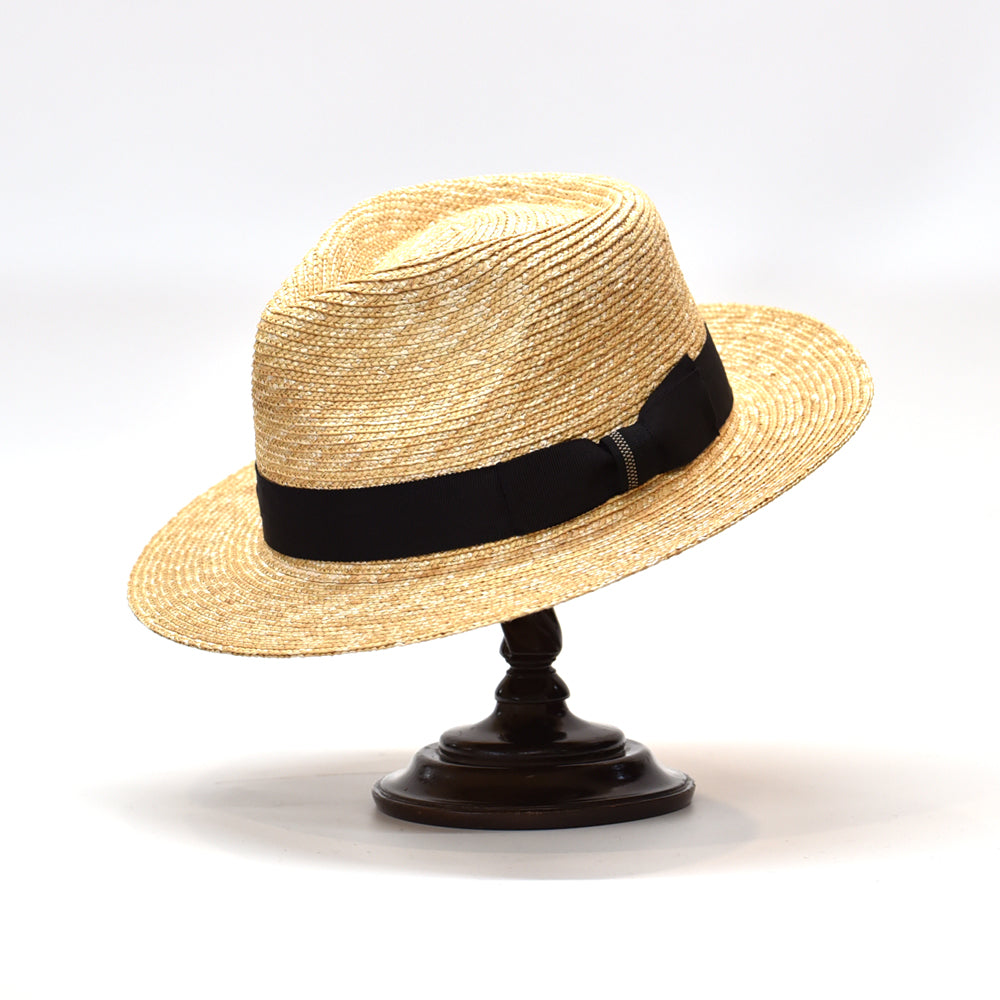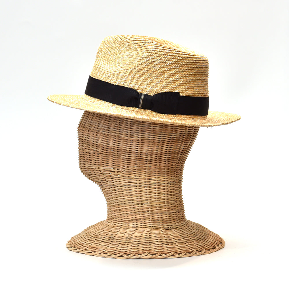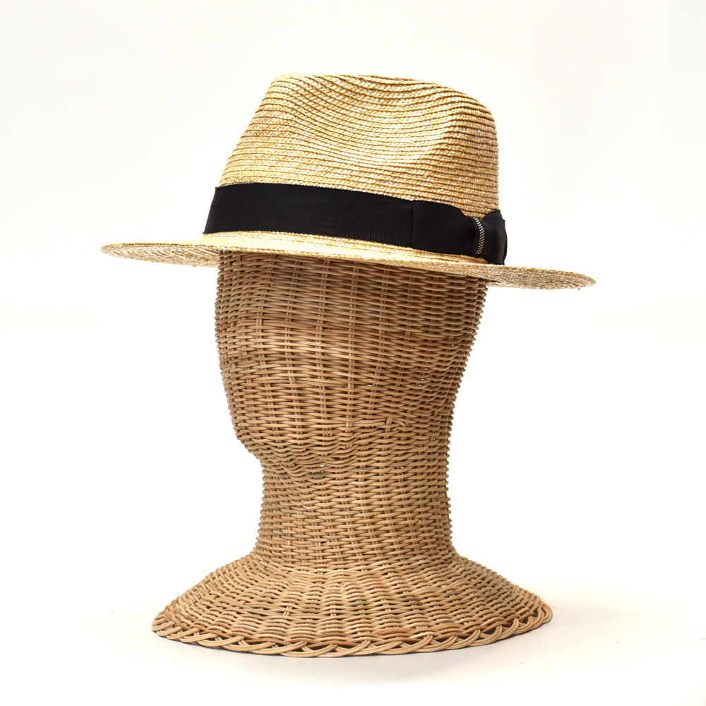 オールダウンロングブリムの麦ブレード中折れハット。多くの方に似合うバランスの良いシルエットです。