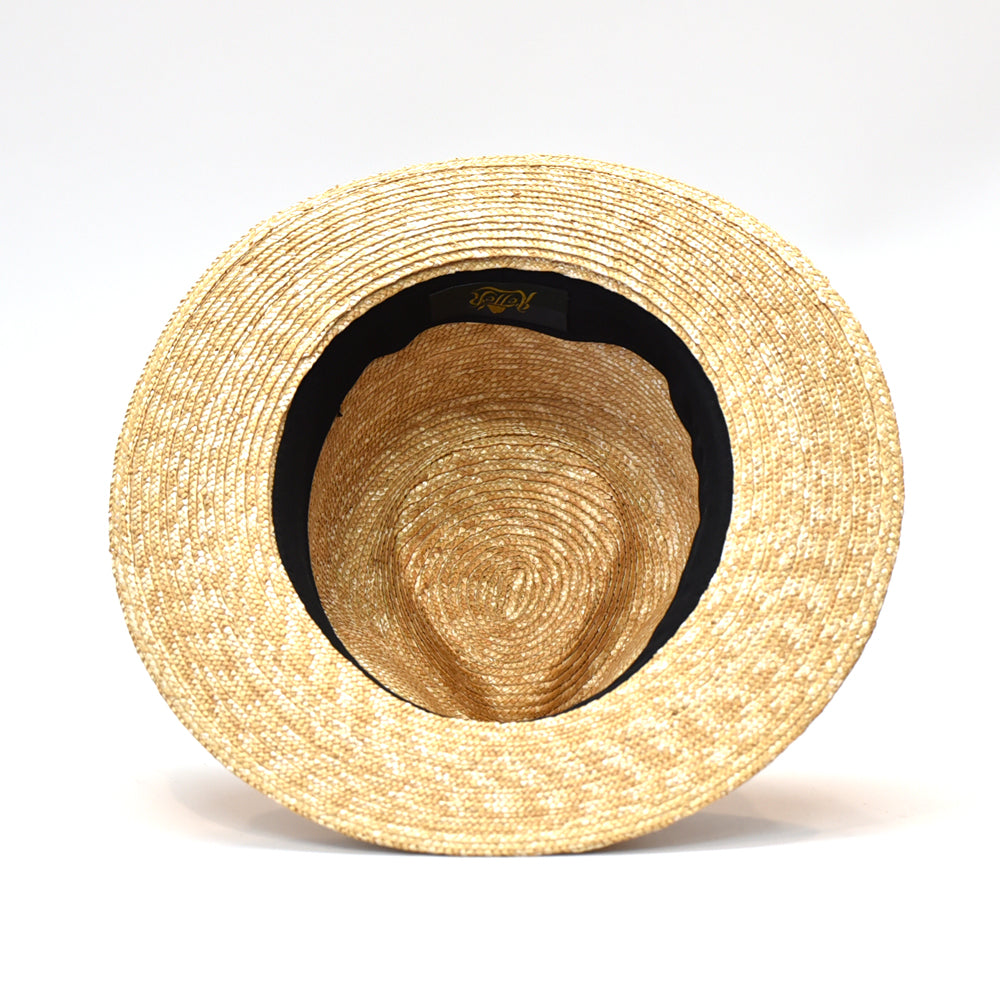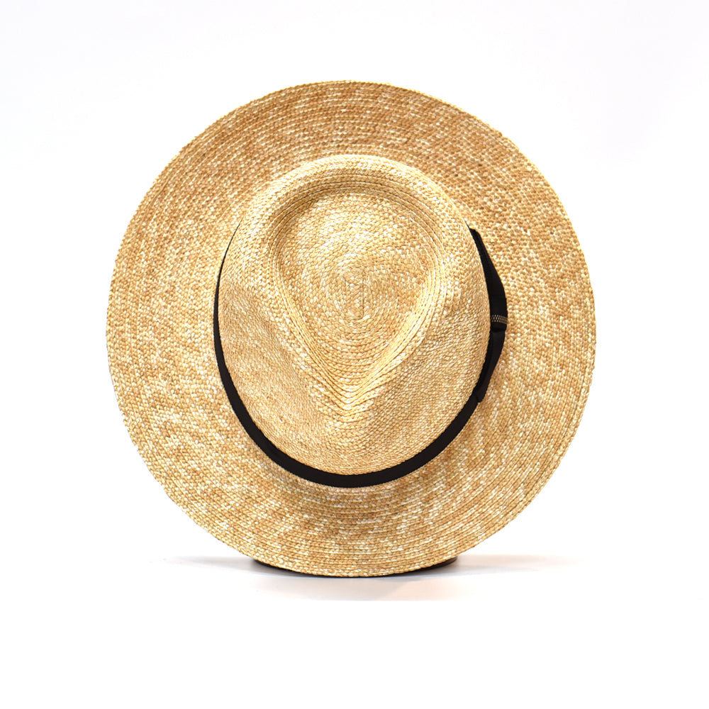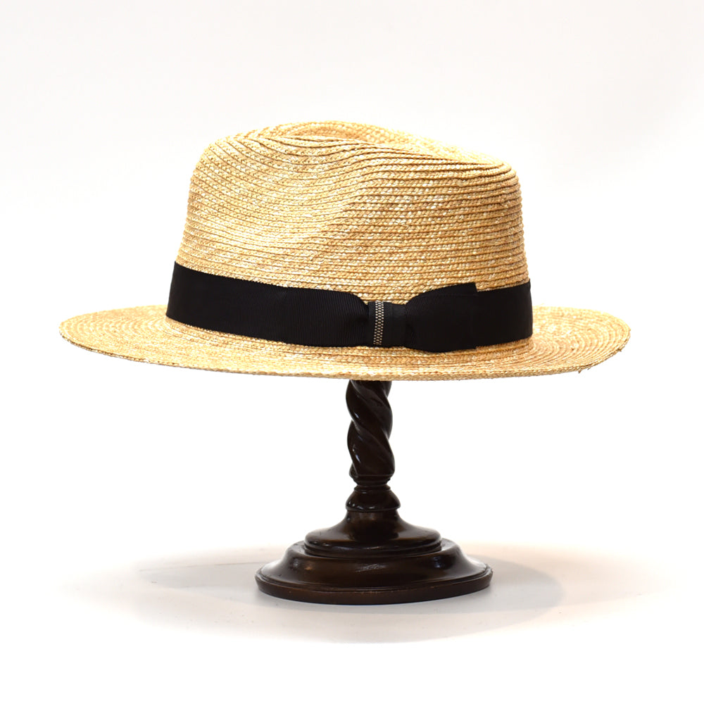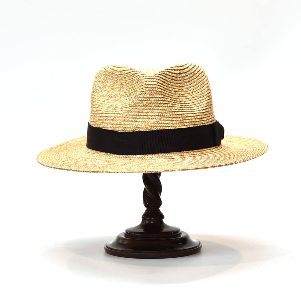 オールダウンロングブリムの麦ブレード中折れハット。多くの方に似合うバランスの良いシルエットです。