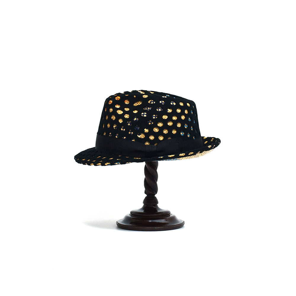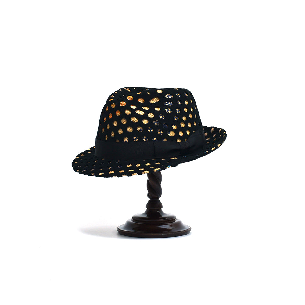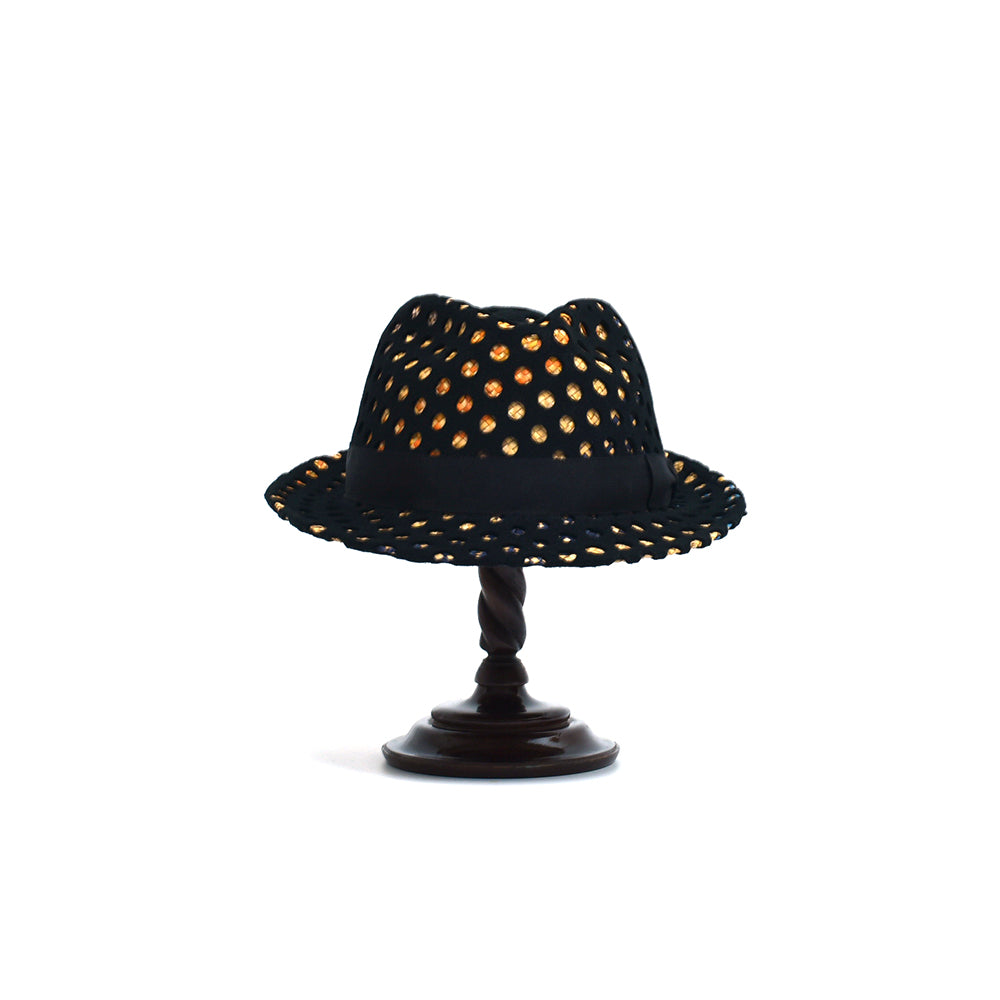 パンチング加工フェルト帽体と天然素材を重ねた他にはない中折れハット。