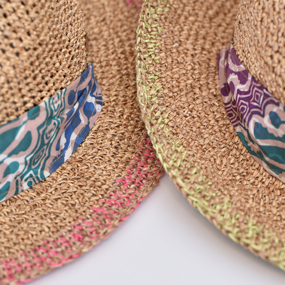 ブレード=天然草や生地で編みこまれた細いリボン、ヒモ状の素材。