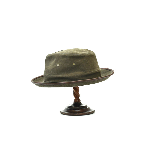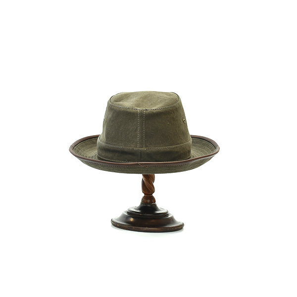 コットン帆布パラフィン加工生地をバイオウォッシュした、洗えて形状も保つHAT に最適素材を使用しています。