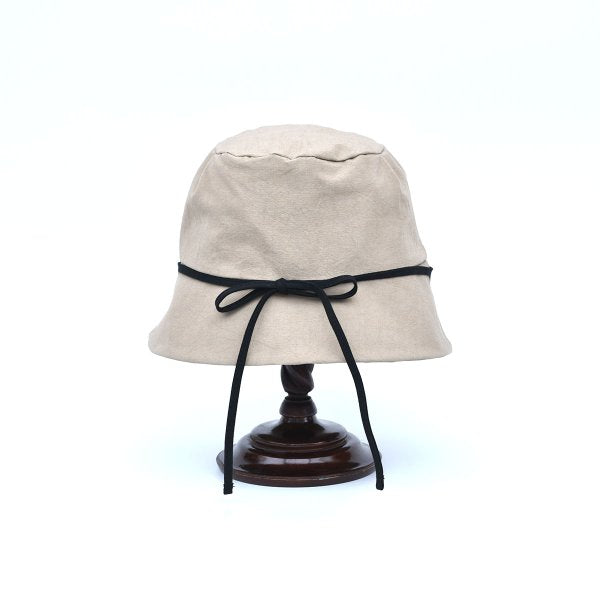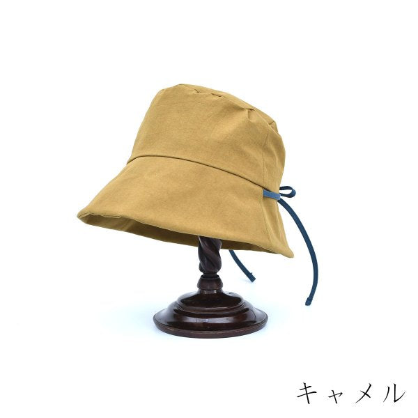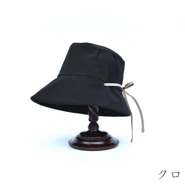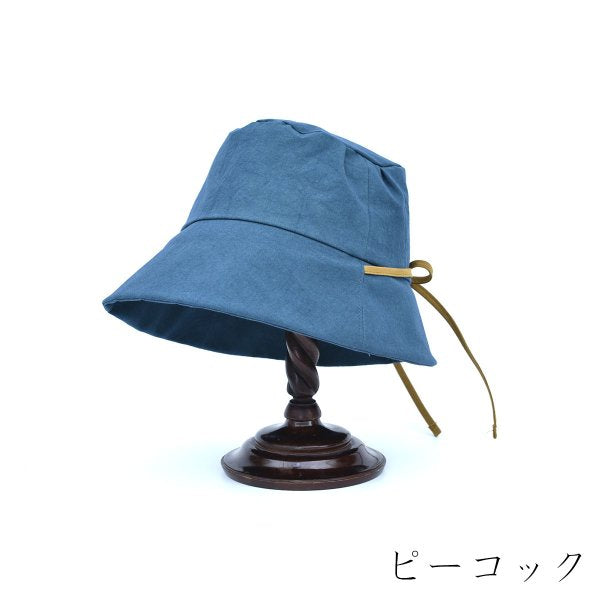 配色のリボンがポイントのハット。リボンは、ブリムの穴に通せばあごひもになる2way仕様